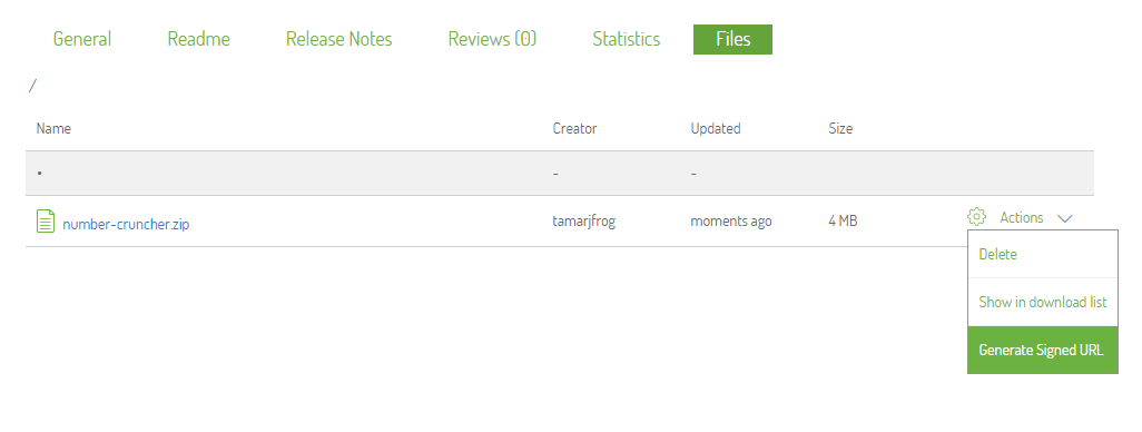 带签名的url对于传递到单个文件下载的链接非常有用。它们允许您提供一个链接,以便从网站下载已发布的文件私人仓库给一个甚至不是Bintray用户的人!您仍然可以跟踪和监控下载量和用户的身份。