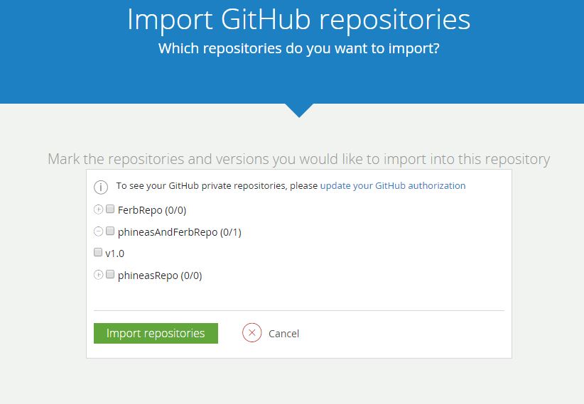 选择您希望导入的存储库和版本,并记住GitHub存储库将是Bintray包,GitHub发布标签将是Bintray中的版本。注意,导入包含存储库结构,而不是实际的文件。