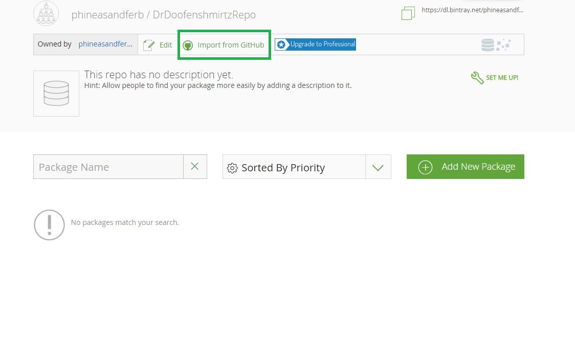 Bintray将显示导入组织下的所有GitHub存储库及其发布标签: