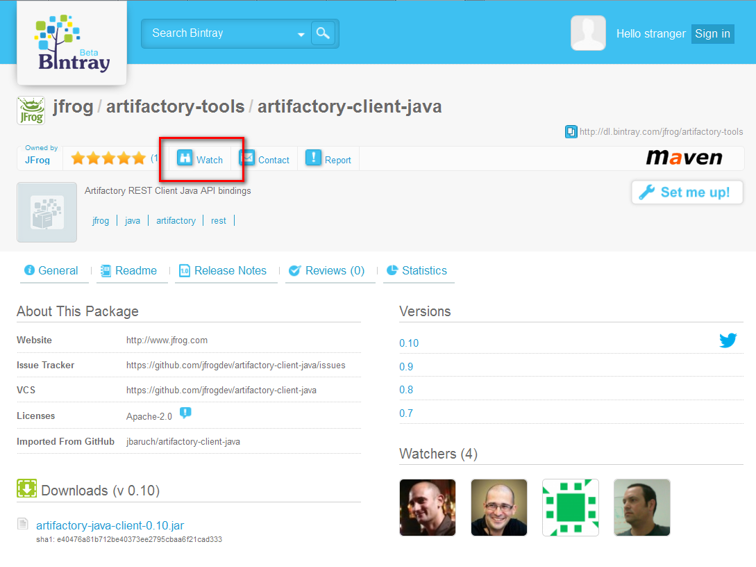 附注:当然,此功能不仅限于Java包。Bintray中的任何二进制文件都可以查看新版本。